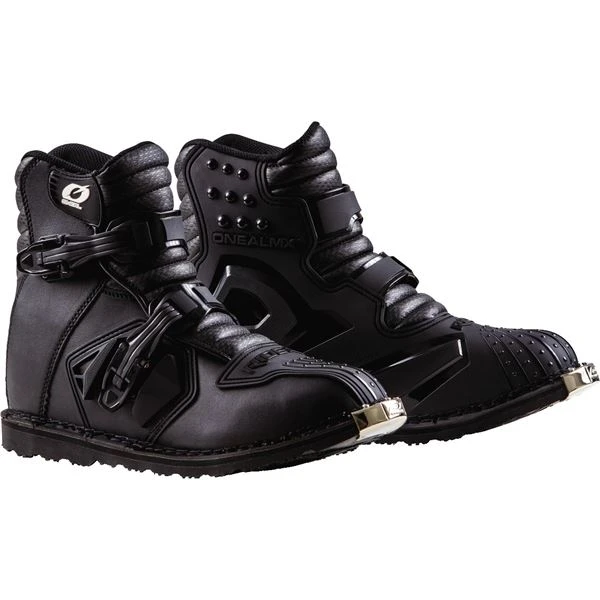 These black motorcycle boots or motocross boots are easy to put on and comfortable to wear. They are constructed with a metal shank insert for added support. The durable welt sole provides stability and a moderate grip when riding.