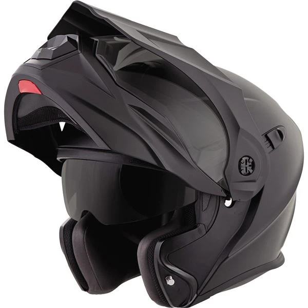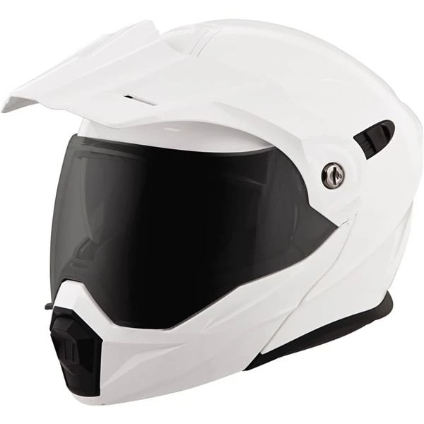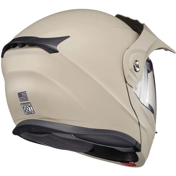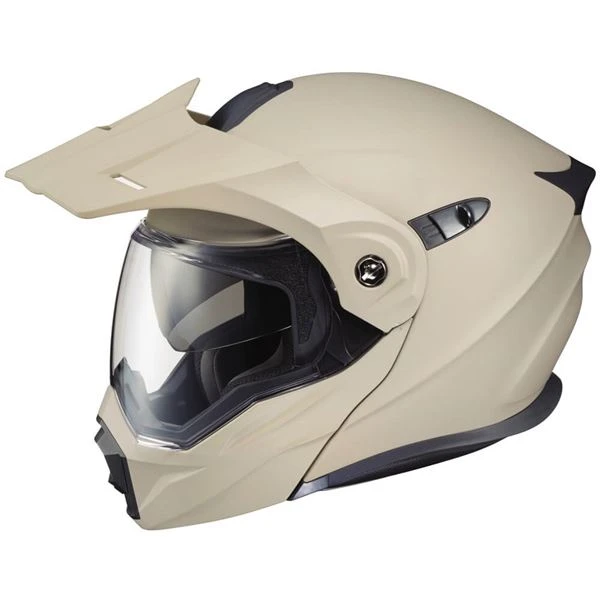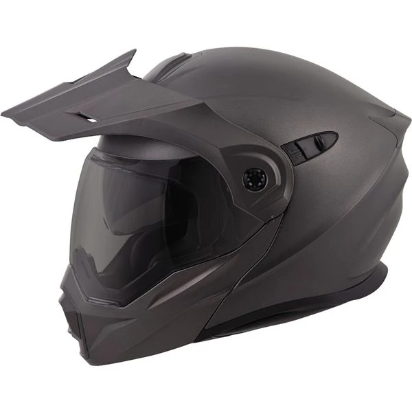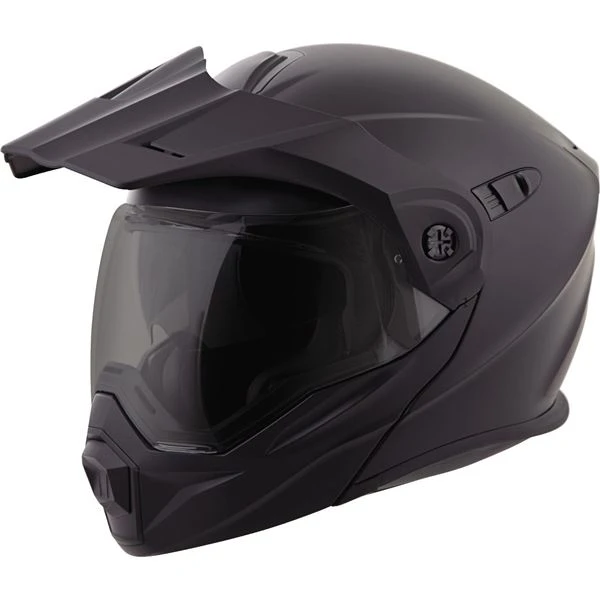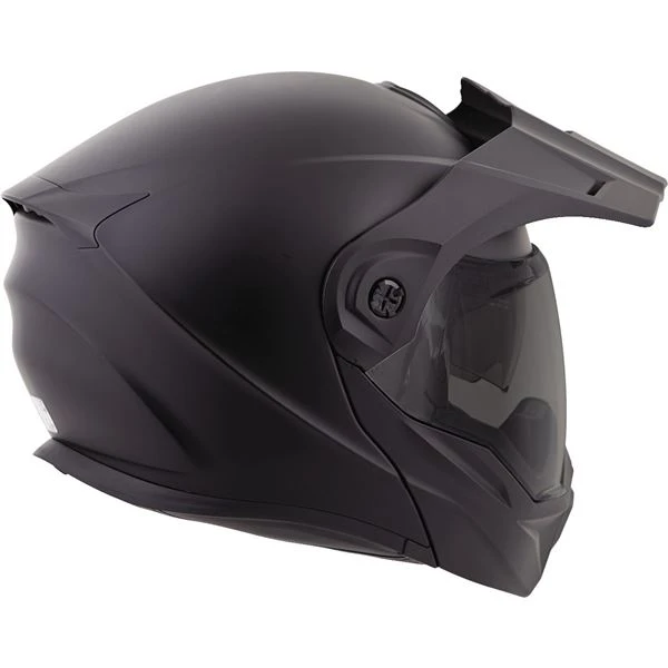 The EXO AT950, a versatile modular Adventure Touring helmet has features and quality that you would expect to pay more for. It can be used as a full face adventure helmet with external peak visor attached or the peak visor can be removed and you have an aerodynamic touring helmet. Scorpion’s oversized eye port is extremely wide for greater peripheral vision and downward visibility, and the modular chin bar can be conveniently flipped up when needed. The internal drop down SpeedView sun visor and KwikWick II liner will keep you comfortable all day long even as lighting conditions change throughout the day. Additionally, the No fog Everclear face shield can be removed and you can use the EXO AT950 as a dirt helmet with goggles for off road use. Various shell sizes made of Advanced LG Polycarbonate and dual density EPS (Expanded Polystyrene), result in a helmet that is light weight, strong and protective.