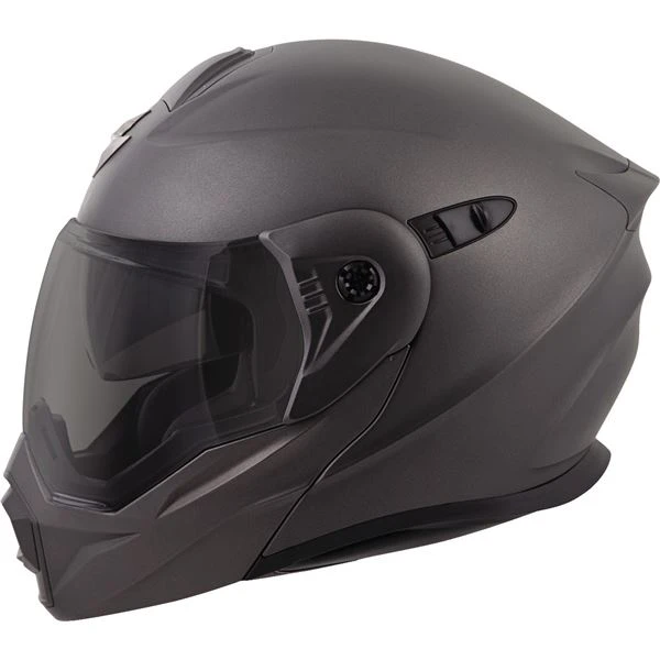 - Everclear SpeedView drop down sun visor, choose the up or down position with an easy sliding mechanism. Also features Scorpion EXO’s exclusive EverClear anti-fog coating on both surfaces